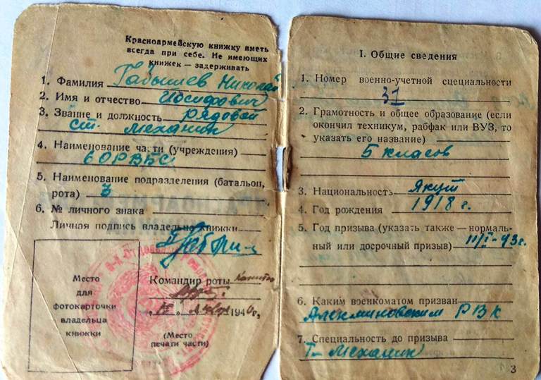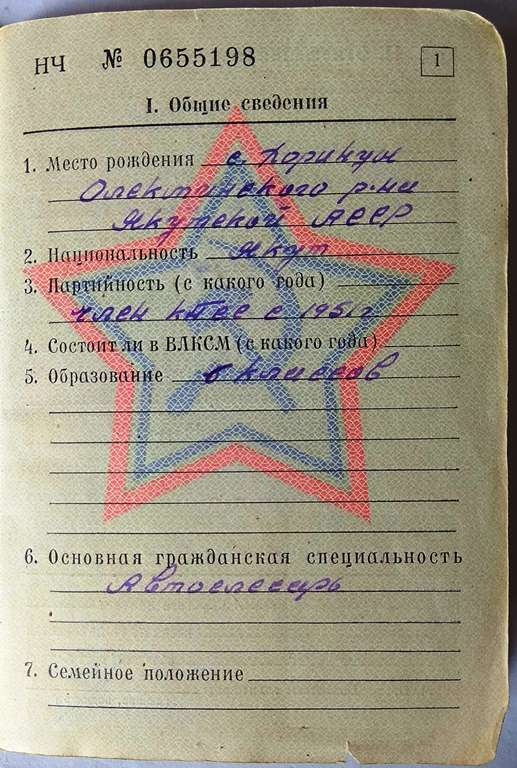 Место призыва: Олекминский РВК, Олекминский р-н, Якутская АССР.